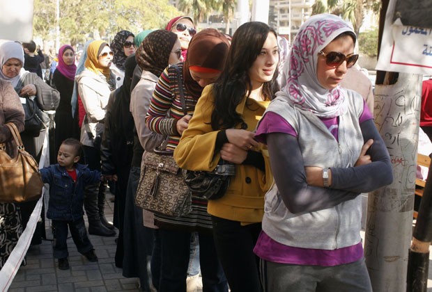 (Foto: Asmaa Waguih/Reuters)Os resultados oficiosos do primeiro dia de votação são baseados nas apurações fornecidas por funcionários dos colégios eleitorais e parecem estar longe da vitória esmagadora esperada pelos islamitas para calar uma oposição ofensiva.